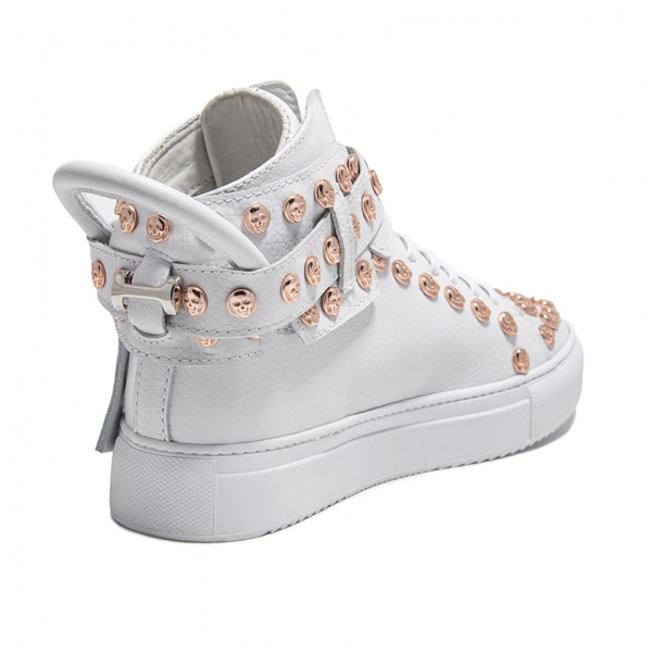 King Pieces presenta los Sneakers Argento Skull White, un producto hecho a mano en Colombia, fabricado en cuero, forrado en el interior en cuero suave badana, cordón encerado y suela en caucho ligero.