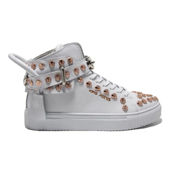 King Pieces presenta los Sneakers Argento Skull White, un producto hecho a mano en Colombia, fabricado en cuero, forrado en el interior en cuero suave badana, cordón encerado y suela en caucho ligero.