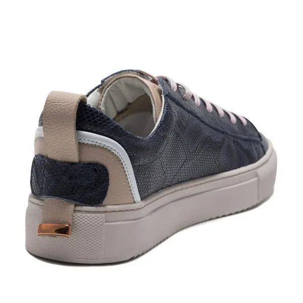 King Pieces presenta los Tenis para hombre Piton Blue Pink, un producto hecho a mano en Colombia, fabricado en cuero, forrado en el interior en cuero suave badana, cordón encerado y suela en caucho ligero.