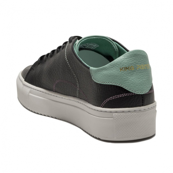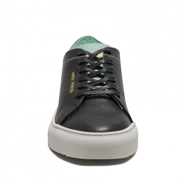 King Pieces presenta los tenis sneakers Lourdes Black&Green, un producto hecho a mano en Colombia, fabricado en cuero, forrado en el interior en cuero suave badana, cordón encerado y suela en caucho ligero.
