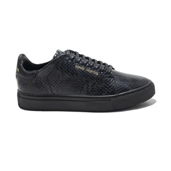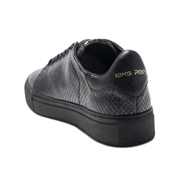 King Pieces presenta los Tenis Hombre Piton Totally Black, un producto hecho a mano en Colombia, fabricado en cuero, forrado en el interior en cuero suave badana, cordón encerado y suela en caucho ligero.